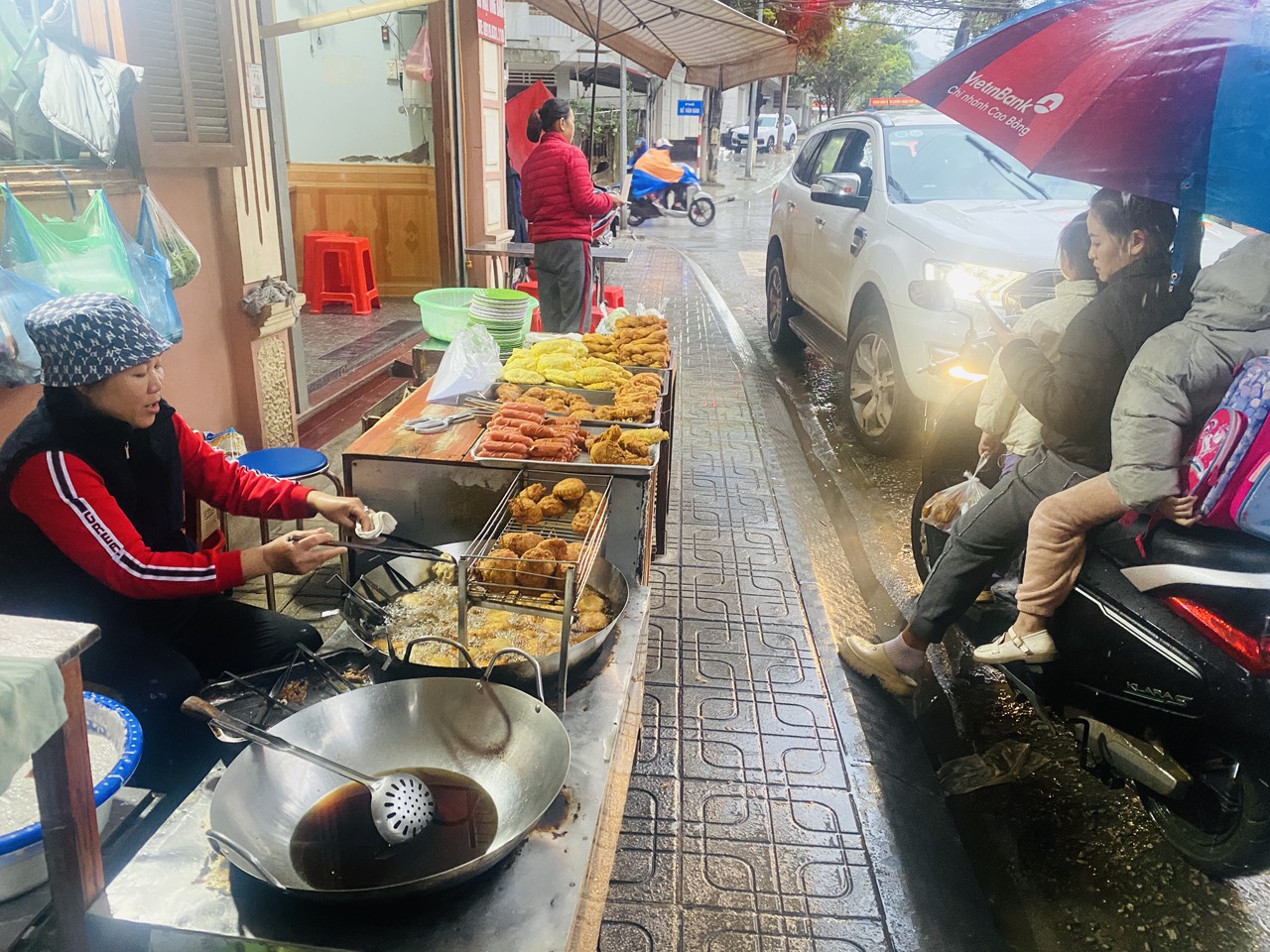 Du khách tranh thủ mua bánh ấm nóng trong thời tiết lạnh đầu đông