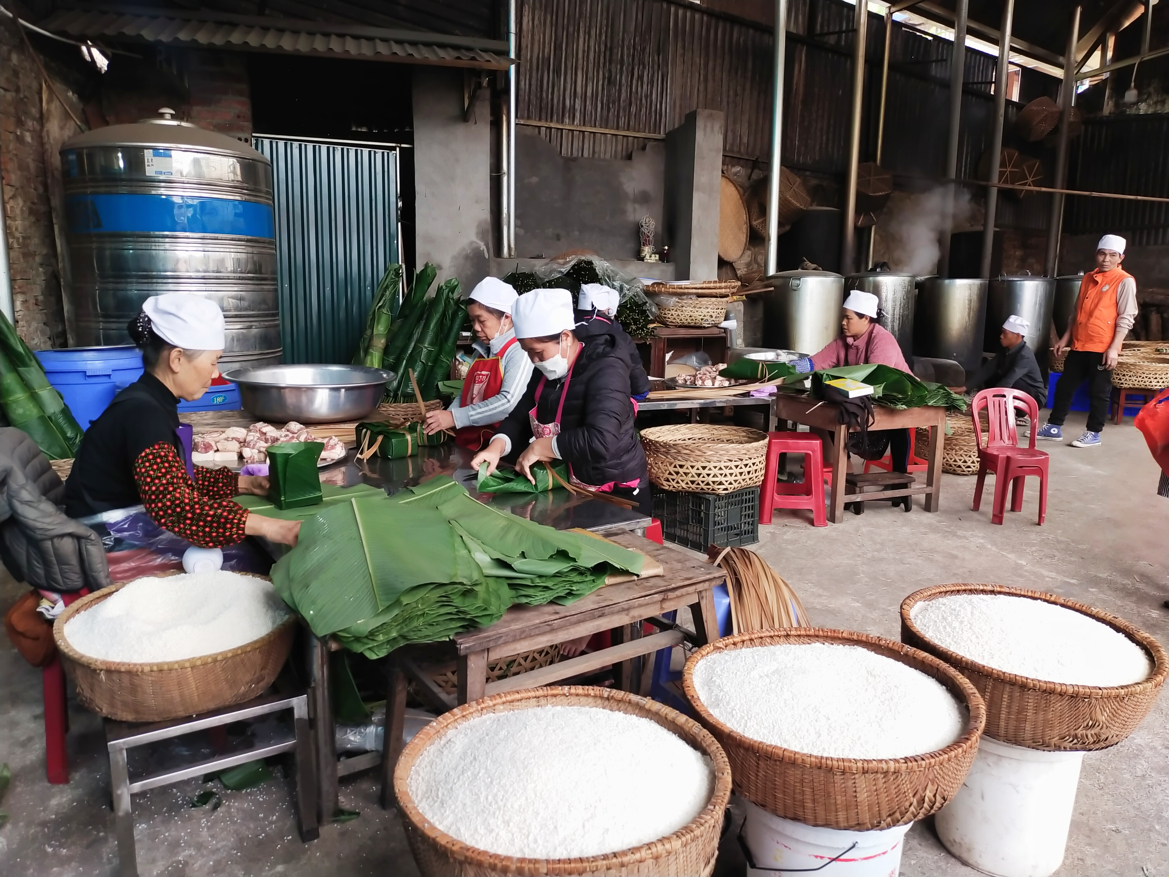 Khâu gói bánh chưng truyền thống tại cơ sở