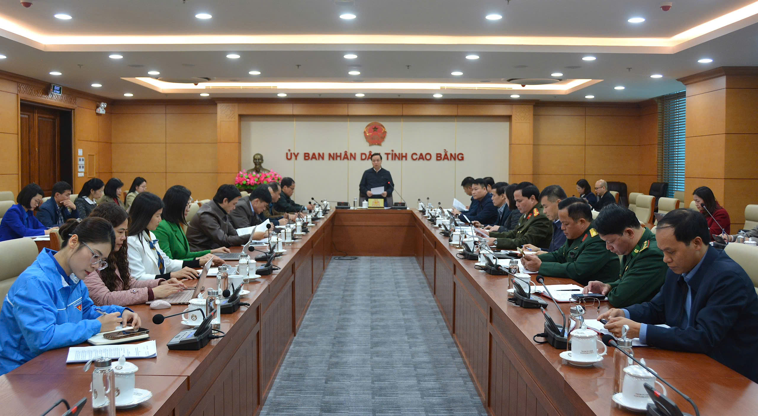 Đồng chí Lê Hải Hoà, Chủ tịch UBND tỉnh, Trưởng Ban Tổ chức Lễ kỷ niệm 85 năm ngày Bác Hồ về nước - chủ trì cuộc họp công tác chuẩn bị các hoạt động trong chuỗi sự kiện.