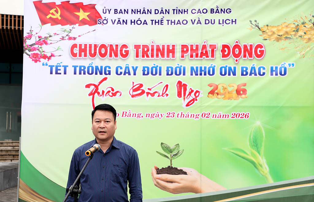 Phát biểu tại lễ phát động, đồng chí Nguyễn Quốc Trung, Tỉnh ủy viên, Giám đốc Sở VHTTDL nhấn mạnh: “Tết trồng cây” – một truyền thống có ý nghĩa tốt đẹp do Bác Hồ khởi xướng, đến nay đã trở thành phong trào rộng khắp trong cả nước. Việc trồng cây đầu xuân không chỉ góp phần bảo vệ môi trường sinh thái, ứng phó với biến đổi khí hậu, mà còn thể hiện trách nhiệm của mỗi cán bộ, đảng viên, công chức, viên chức trong việc xây dựng cảnh quan xanh – sạch – đẹp. Thông qua hoạt động Tết trồng cây, Sở Văn hóa, Thể thao và Du lịch tiếp tục lan tỏa tinh thần đoàn kết, trách nhiệm, chung tay vì môi trường xanh; đồng thời khẳng định quyết tâm thực hiện thắng lợi các nhiệm vụ chính trị được giao trong năm 2026, góp phần xây dựng tỉnh Cao Bằng ngày càng phát triển toàn diện.