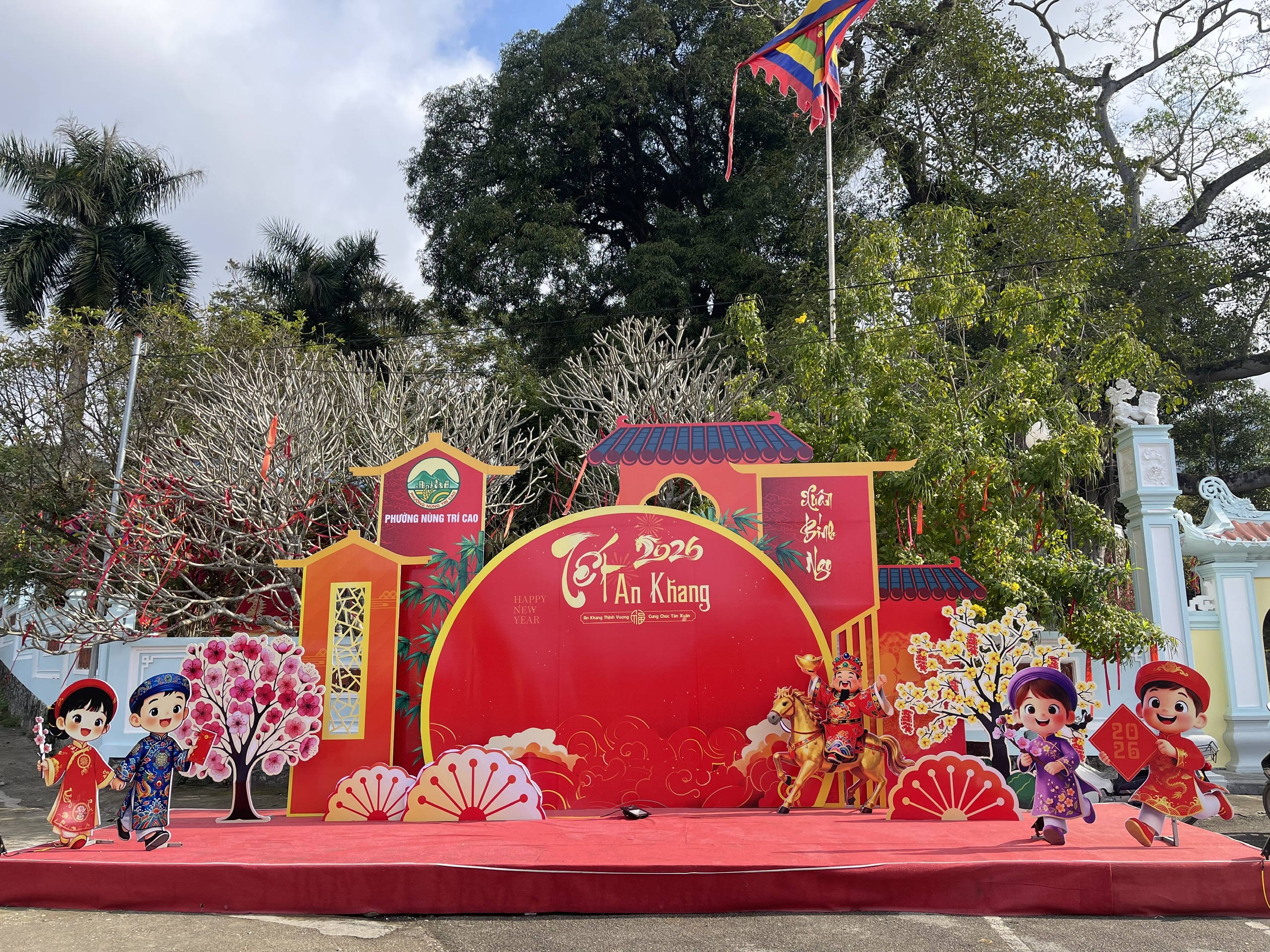 Để chuẩn bị cho mùa lễ hội, UBND phường Nùng Trí Cao đã hoàn thiện công tác vệ sinh, chỉnh trang khuôn viên di tích: dựng cổng hội, tiểu cảnh check-in, trang trí hoa đào, hoa cúc, quất, lan, treo cờ… tạo không gian rực rỡ, trang trọng, sẵn sàng đón du khách về du xuân, lễ đền đầu năm.