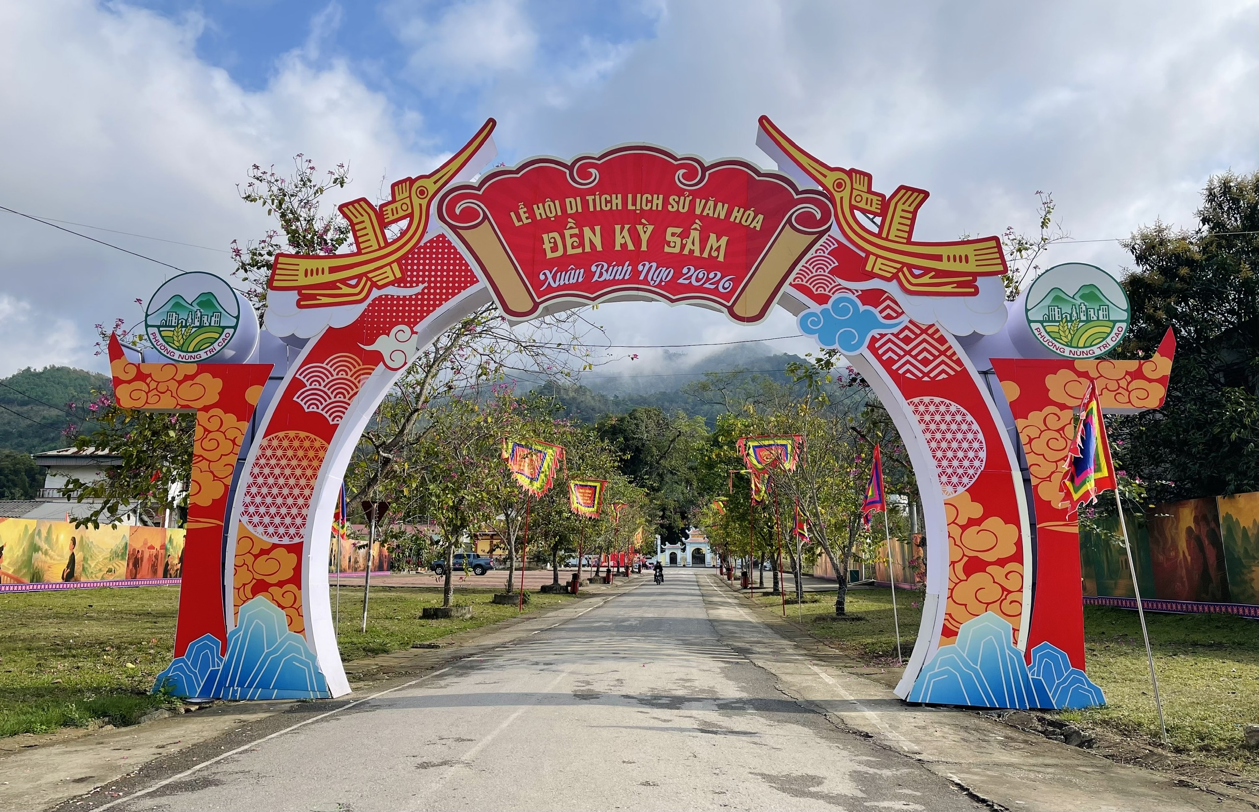 Cổng chào mừng Lễ hội Đền Kỳ Sầm 2026 trang hoàng rực rỡ