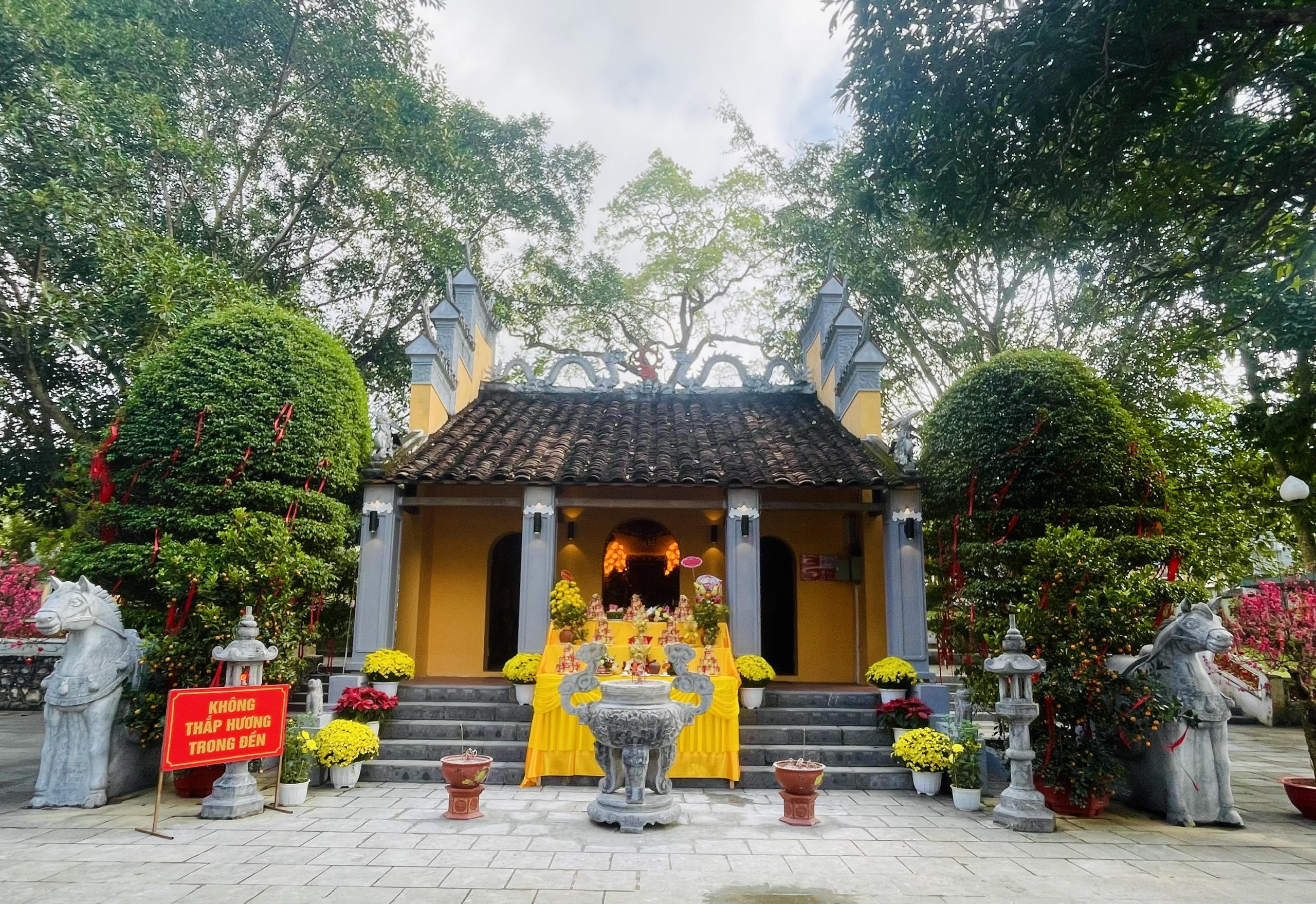 Đôi ngựa đá trước đền Kỳ Sầm (phường Nùng Trí Cao) - Ảnh: Hồng Son