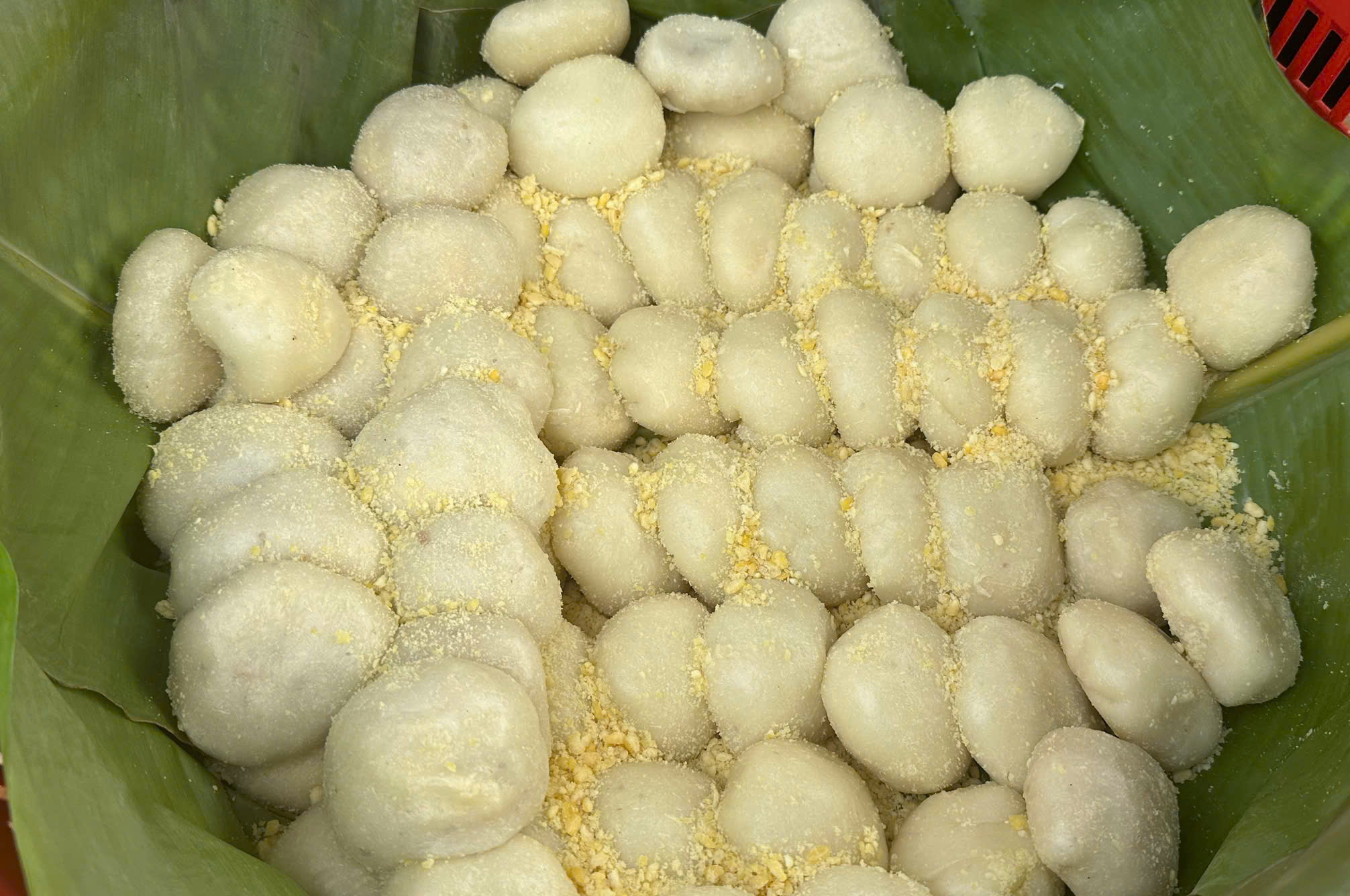 Cùng với sắc đỏ của trứng, các loại bánh dày cũng là thức quà bình dị có sức hút rất lớn tại các gian hàng. Được làm từ gạo nếp thơm giã nhuyễn, bánh có độ dẻo mịn đặc trưng, thể hiện sự khéo léo của người phụ nữ bản địa. Bên cạnh sắc trắng nguyên bản, thực khách có thể thưởng thức bánh dày ngải với màu xanh mướt và vị thanh mát từ lá cây ngải cứu, bánh dày gấc có sắc đỏ cam hay bánh dày cẩm mang màu tím bắt mắt. Sự đa dạng đến từ phần nhân bánh với nhân lạc ngọt thanh hoặc nhân đỗ xanh đậm đà vị mặn, đáp ứng sở thích phong phú của thực khách. Ngoài bánh dày, các gian hàng còn bày bán bánh rán vừng, bánh rán tẩm đường, bánh “Mò mè su héc” vàng ruộm (loại bánh làm bằng bột nếp nặn thành các hình con vật và áp chảo) và chè lam - món bánh từng lọt “Top 100 đặc sản quà tặng Việt Nam”. Sự kết hợp giữa bột nếp, mật mía và gừng già trong món chè lam tạo nên vị cay nhẹ ấm áp, gợi nhắc về tình cảm gia đình bền chặt.