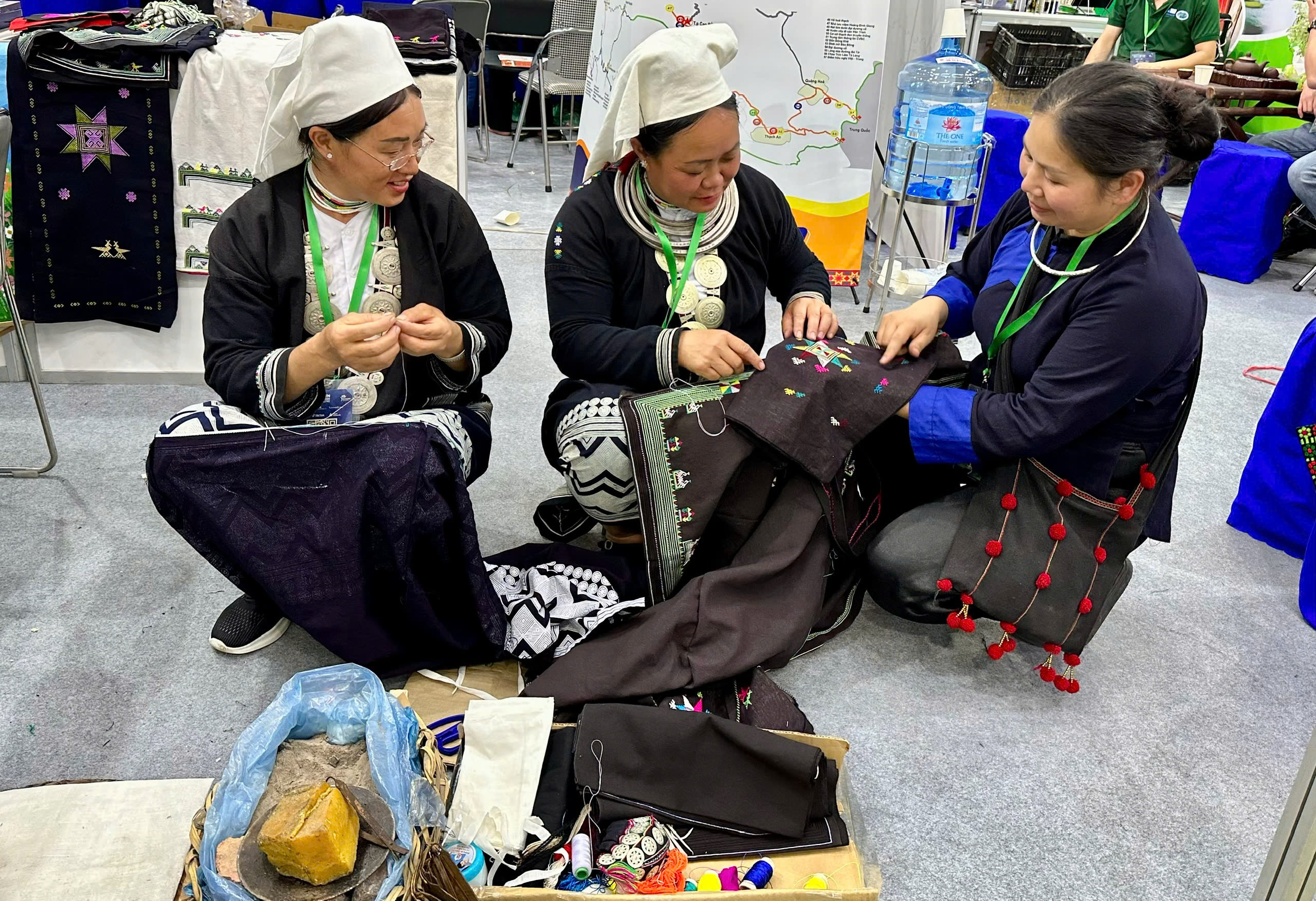 Cùng với đó, nhiều sản phẩm thủ công bản địa được trưng bày như: búp bê mặc trang phục dân tộc, túi, khăn thêu thủ công, sổ tay giấy bản… Không gian ẩm thực cũng mang đến những trải nghiệm gần gũi khi du khách có thể thưởng thức các đặc sản, sản phẩm OCOP tiêu biểu như: trà, thạch đen, hạt dẻ, bánh khảo, lạp sườn... những hương vị đặc trưng gắn liền với đời sống người dân địa phương.