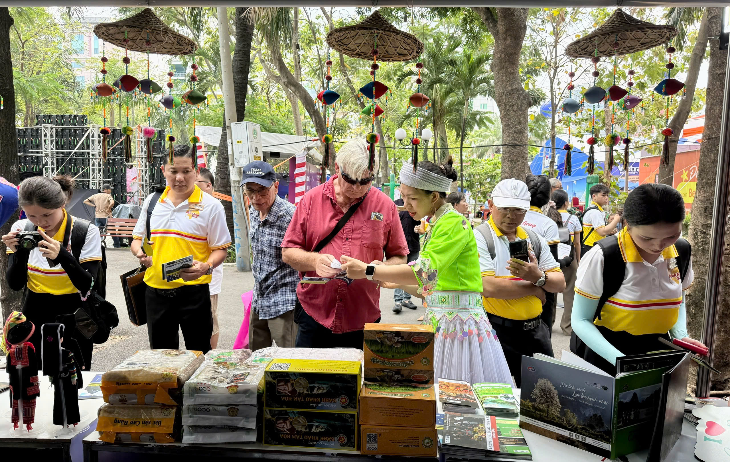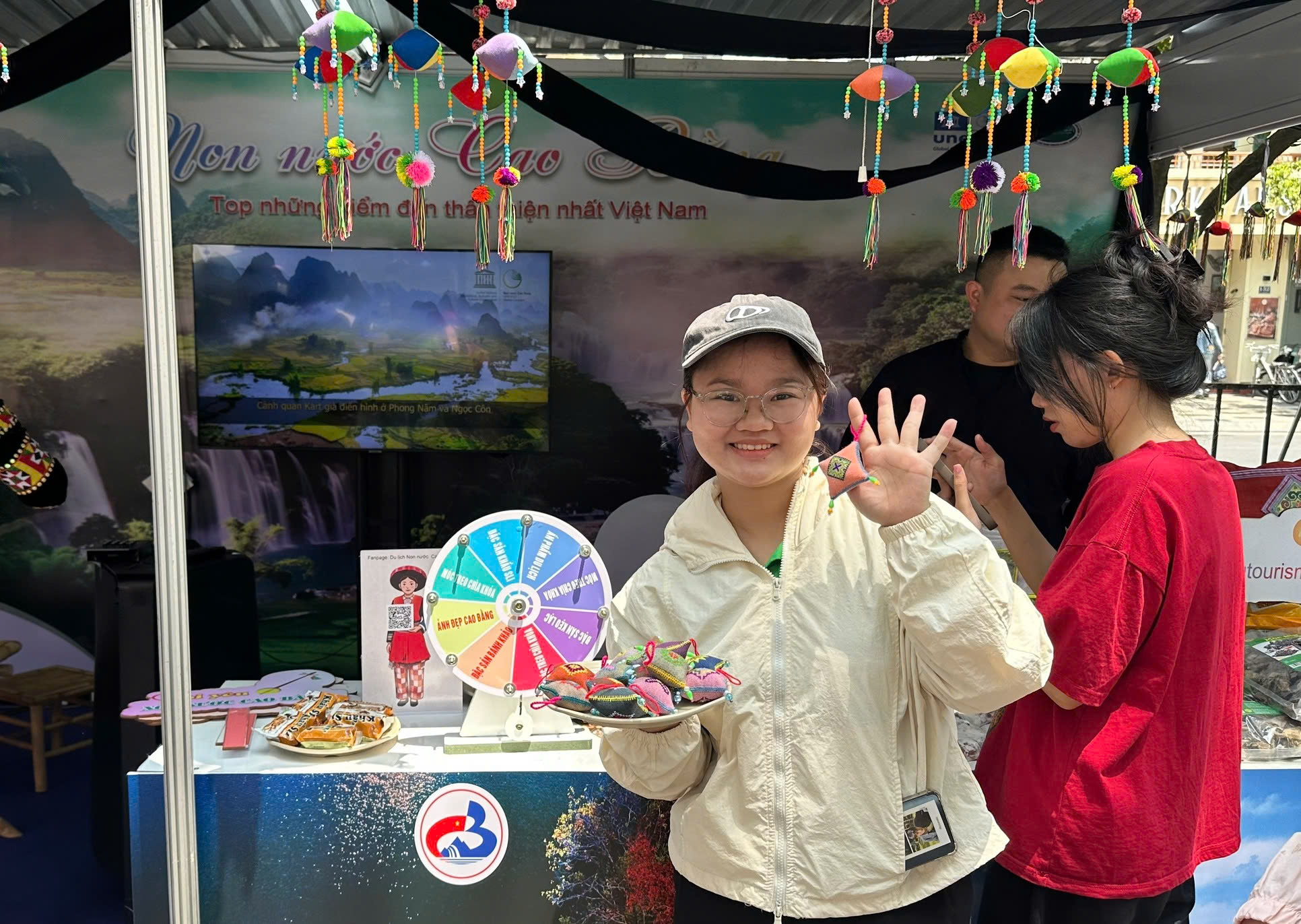 Không khí tại gian hàng thêm phần sôi động với các hoạt động tương tác hiện đại. Chương trình mini game “Vòng quay may mắn” thu hút đông đảo bạn trẻ tham gia, tạo sự gắn kết và góp phần lan tỏa mạnh mẽ hình ảnh du lịch tỉnh trên các nền tảng mạng xã hội. Sự kết hợp giữa văn hóa truyền thống và các hình thức quảng bá đổi mới đã mang lại hiệu quả cao trong việc khẳng định thương hiệu du lịch Cao Bằng tại sự kiện năm nay.