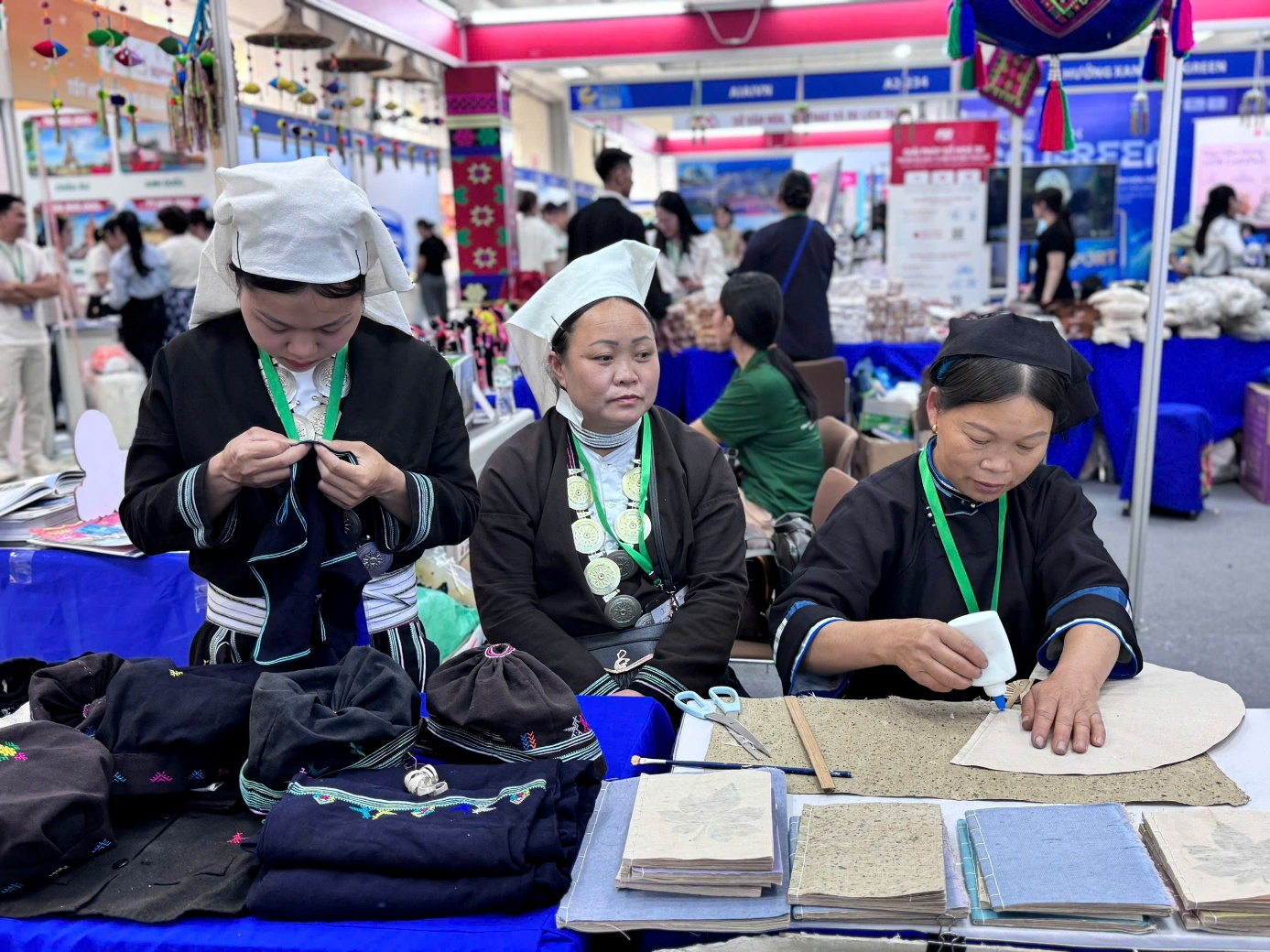 Bên cạnh đó, du khách còn có cơ hội tìm hiểu các nghề thủ công truyền thống gắn với phát triển du lịch cộng đồng, như: nghề làm giấy bản Dìa Trên (xã Quảng Uyên), nghề in hoa văn bằng sáp ong, thêu hoa văn thủ công của người Dao Tiền (xóm Hoài Khao, xã Thành Công), mang đến những trải nghiệm gần gũi về đời sống văn hóa địa phương. Tại gian hàng Cao Bằng, du khách có thể tiếp cận các ấn phẩm giới thiệu danh lam thắng cảnh, bản sắc văn hóa các dân tộc và các điểm đến tiêu biểu của tỉnh. Với đội ngũ cán bộ luôn sẵn sàng hỗ trợ, tư vấn, gian hàng tạo điều kiện thuận lợi để du khách tìm hiểu, lựa chọn hành trình khám phá phù hợp.