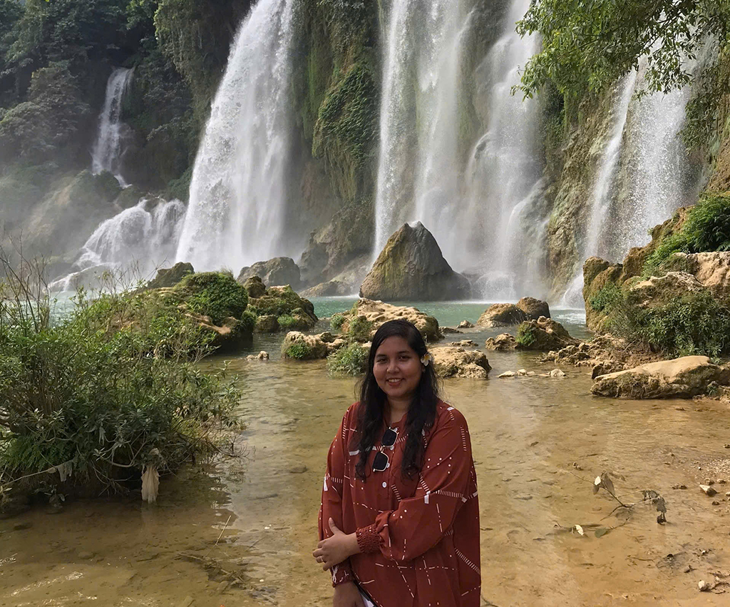 Bạn Sebrin đến từ Banglades đến thăm thác Bản Giốc, huyện Trùng Khánh.