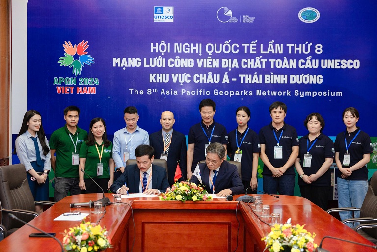 Ban Quản lý CVĐC Non nước Cao Bằng và Ban Quản lý CVĐC Mudeungsan (Hàn Quốc) ký biên bản thoả thuận thiết lập quan hệ hợp tác bên lề Hội nghị APGN 8.