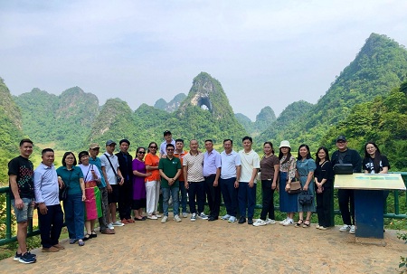 Hoạt động kết nối giữa Mạng lưới đối tác CVĐC Non nước Cao Bằng và Mạng lưới đối tác CVĐC Cao nguyên đá Đồng Văn, Hà Giang khảo sát các tuyến du lịch CVĐC Non nước Cao Bằng.