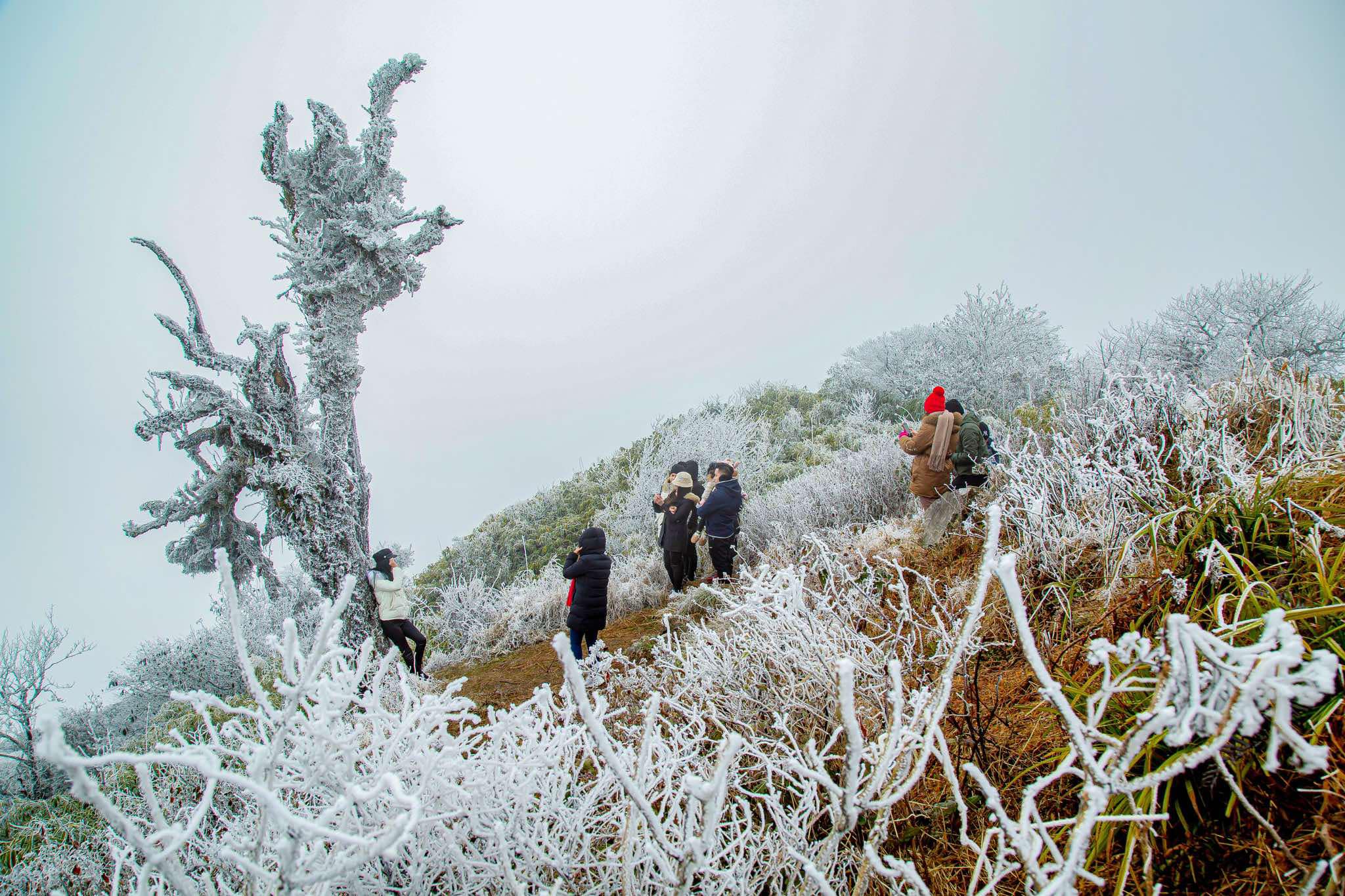 Tôi đến đây trong sự háo hức, bước chân qua những con đường dẫn lên độ cao gần 2.000 mét so với mực nước biển. Mỗi góc nhìn đều khiến tôi không khỏi trầm trồ. Những tán cây mỏng manh phủ băng, những ngọn cỏ bên đường kết tinh thành các hình thù kỳ lạ, tất cả hòa quyện với bầu không khí trong lành, lạnh giá tạo nên một bức tranh thiên nhiên tuyệt mỹ.