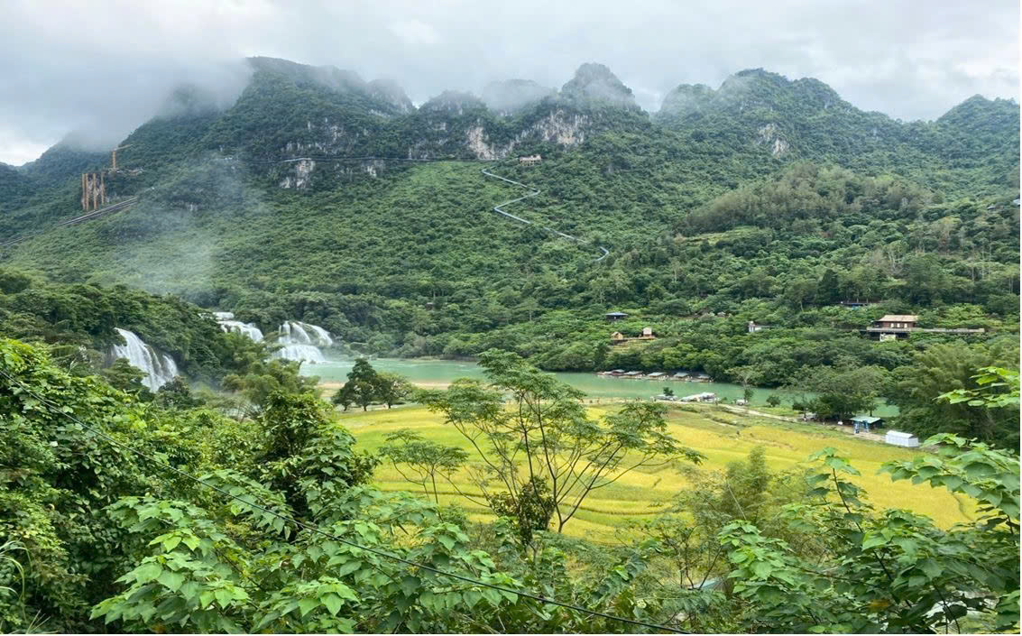Cánh đồng lúa tại thác Bản Giốc trong tháng 9, 10 hàng năm