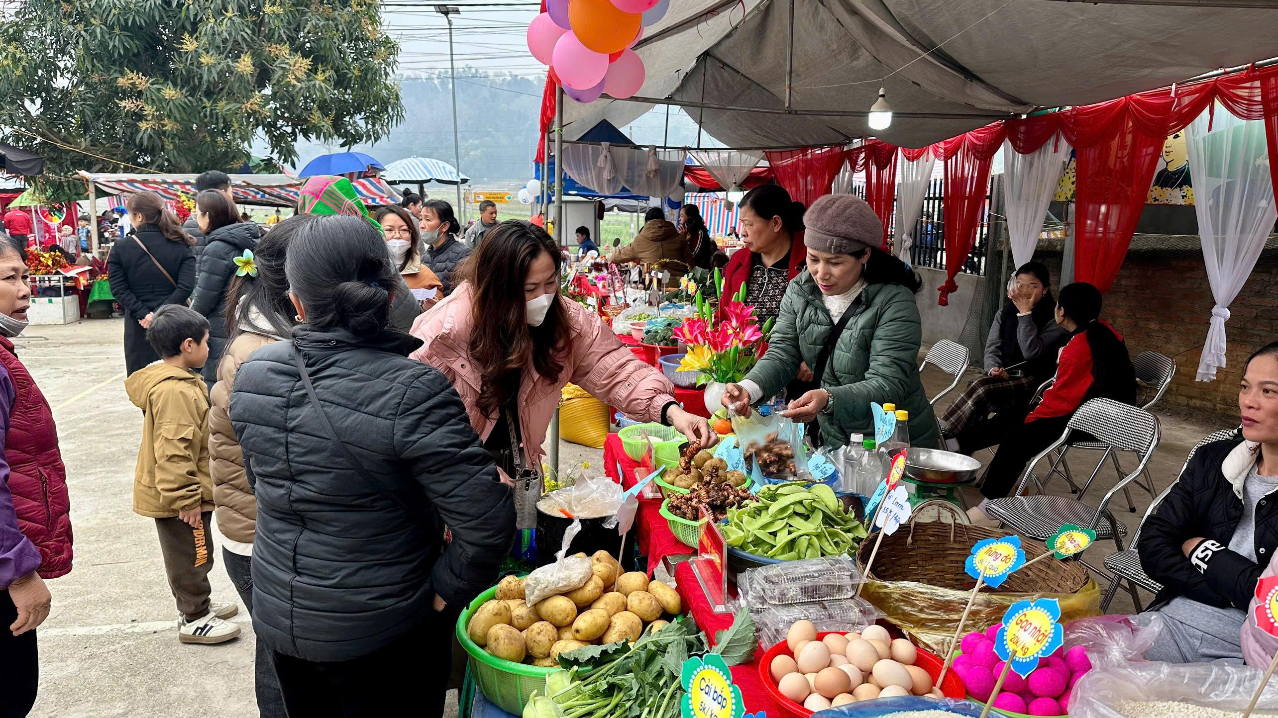 Điểm nhấn đặc biệt của lễ hội năm nay là sự tham gia của các gian hàng đến từ các xóm trong xã, mang đến những sản vật đặc trưng của địa phương như: gạo nếp, rượu men lá, măng khô, lạp sườn, bánh khảo và các loại nông sản khác. Du khách không chỉ được thưởng thức ẩm thực truyền thống, mà còn hiểu thêm về nét đẹp trong đời sống văn hoá của người dân vùng cao.
