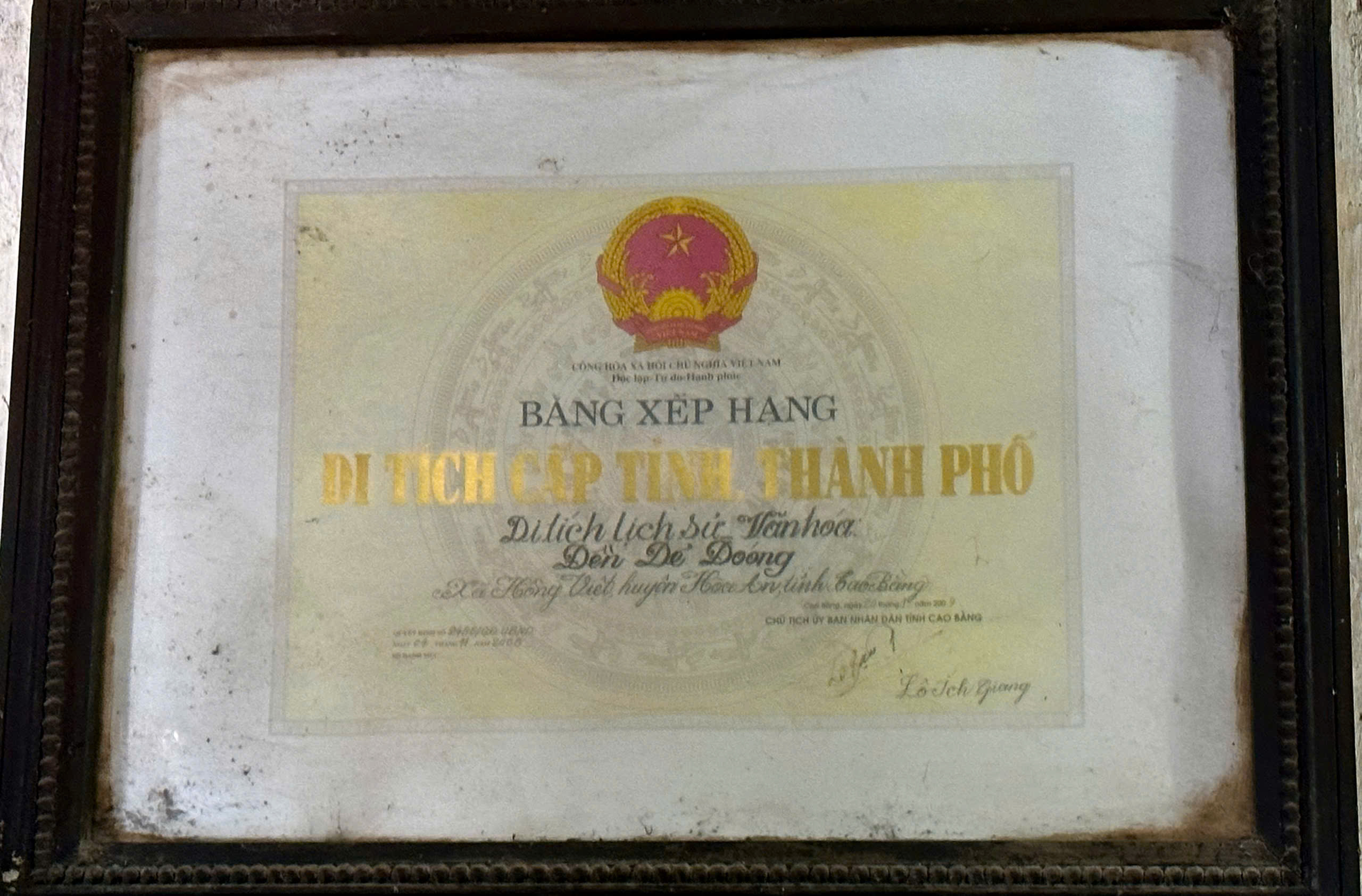 Đền Dẻ Đoóng được Ủy ban nhân dân tỉnh công nhận Di tích Lịch sử văn hóa cấp tỉnh vào năm 2008.
