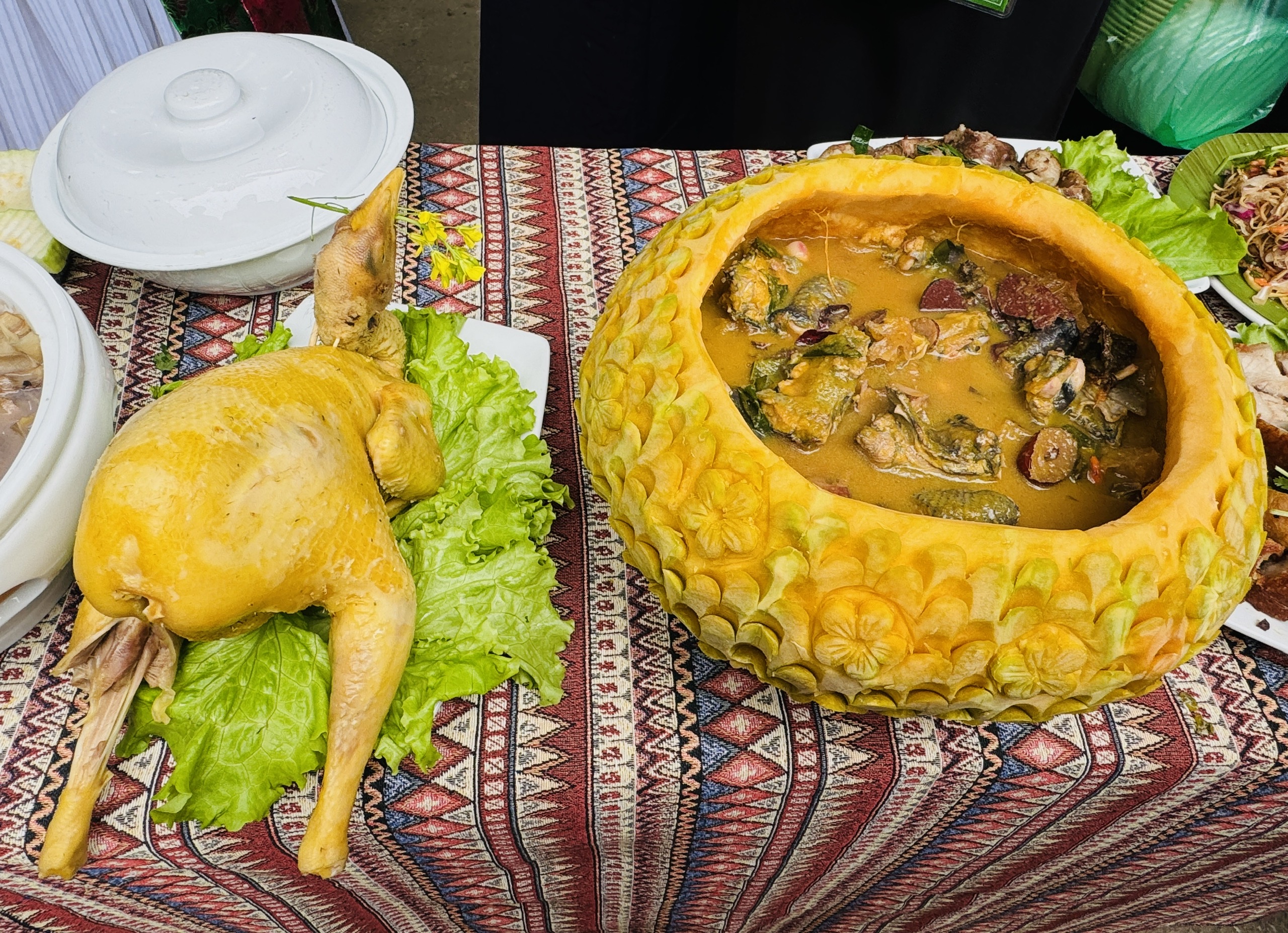 Trong đó, món ăn truyền thống độc đáo của người Mông “Gà không phao câu hầm thuốc Bắc” là món ăn không chỉ giàu giá trị dinh dưỡng mà còn thể hiện sâu sắc triết lý sống coi trọng sức khỏe và sự ấm no của đồng bào.