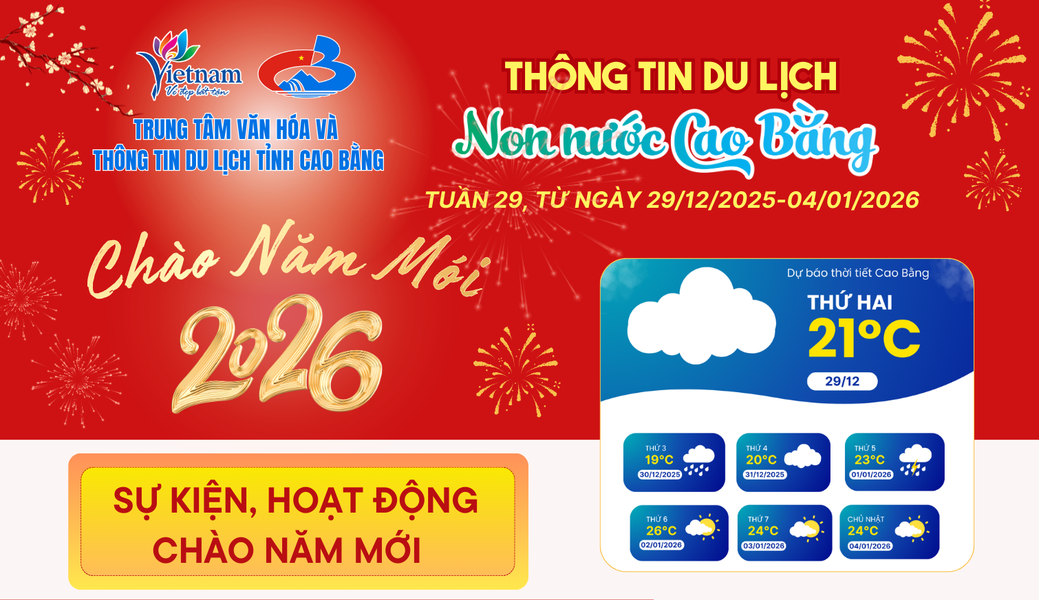 THÔNG TIN DU LỊCH NON NƯỚC CAO BẰNG TUẦN 29, TỪ NGÀY 29/12/2025-04/01/2026